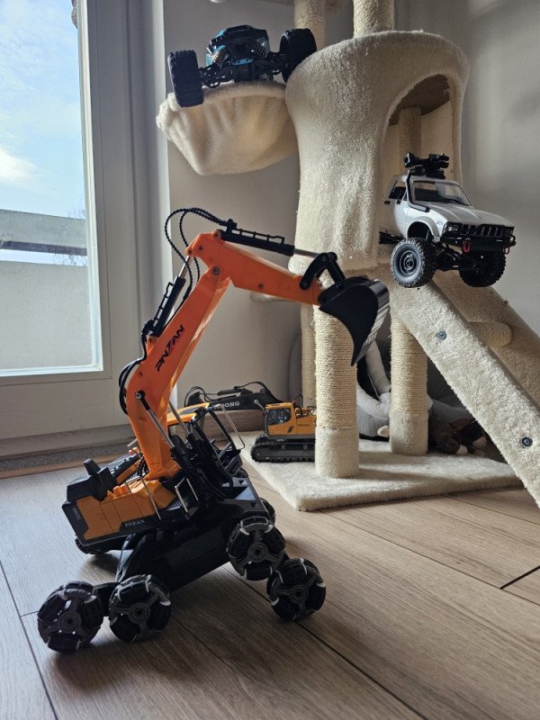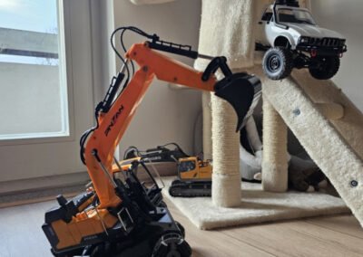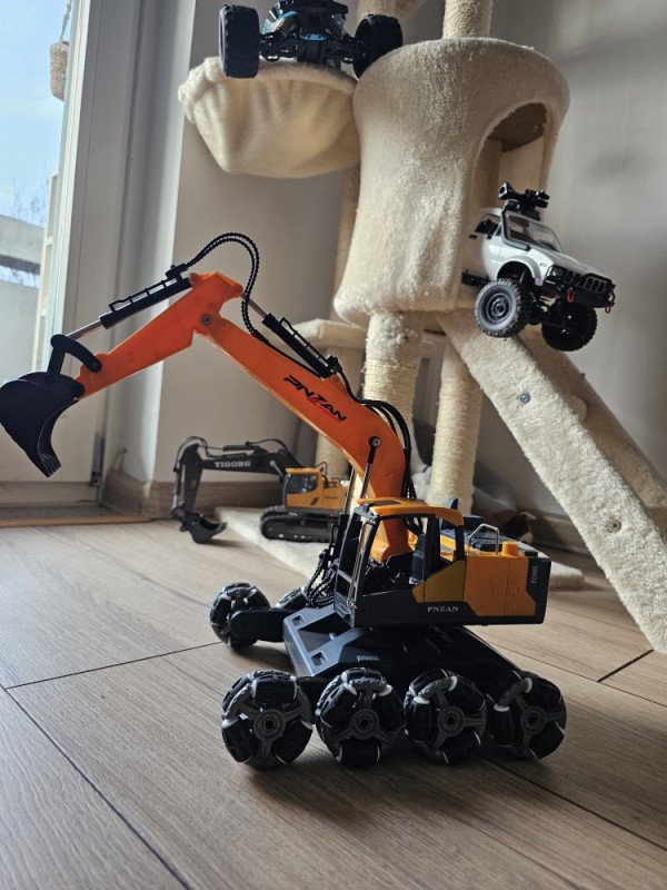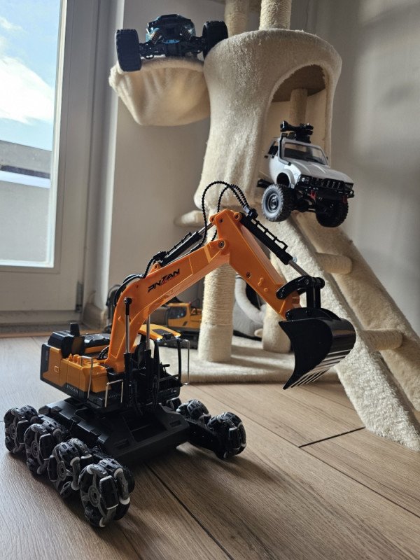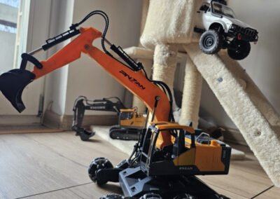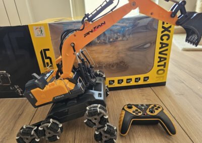 Ovo nije obični RC bager – ovo je stunt verzija koja može driftati, penjati se, rotirati u mjestu i juriti po svim terenima. Djeca ga obožavaju jer spaja dvije stvari: bager koji radi sve kao pravi + automobil koji radi vratolomije.