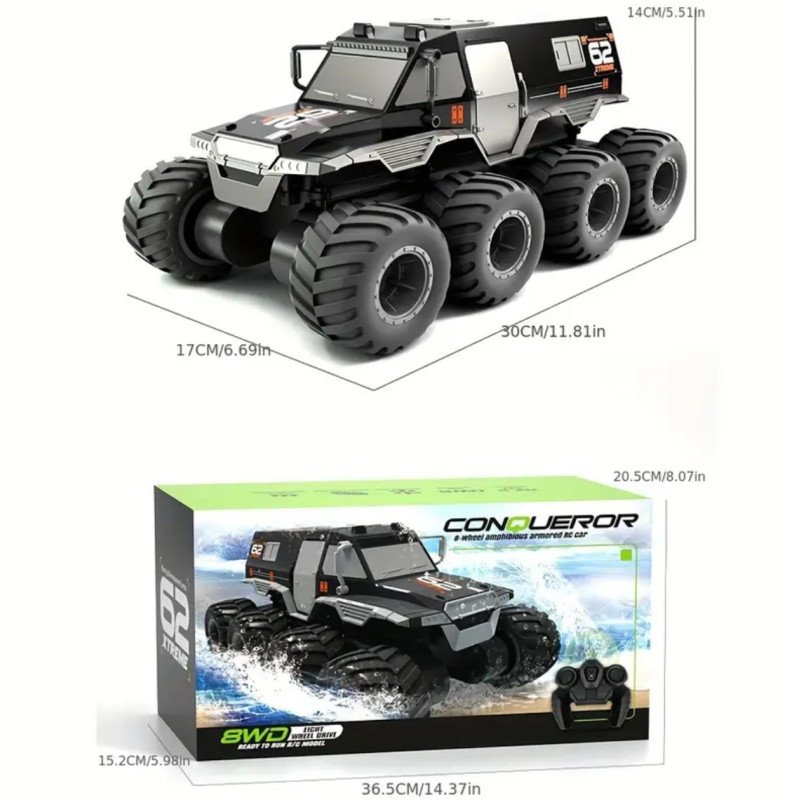Predstavljamo ultimativni 8×8 RC off-road model, dizajniran za ekstremne uslove vožnje i maksimalnu zabavu! Ovaj moćni model dolazi sa pogonom na svih 8 točkova, što mu omogućava nevjerovatnu stabilnost i upravljivost na svim terenima – bilo da je riječ o pijesku, blatu, snijegu ili vodi!